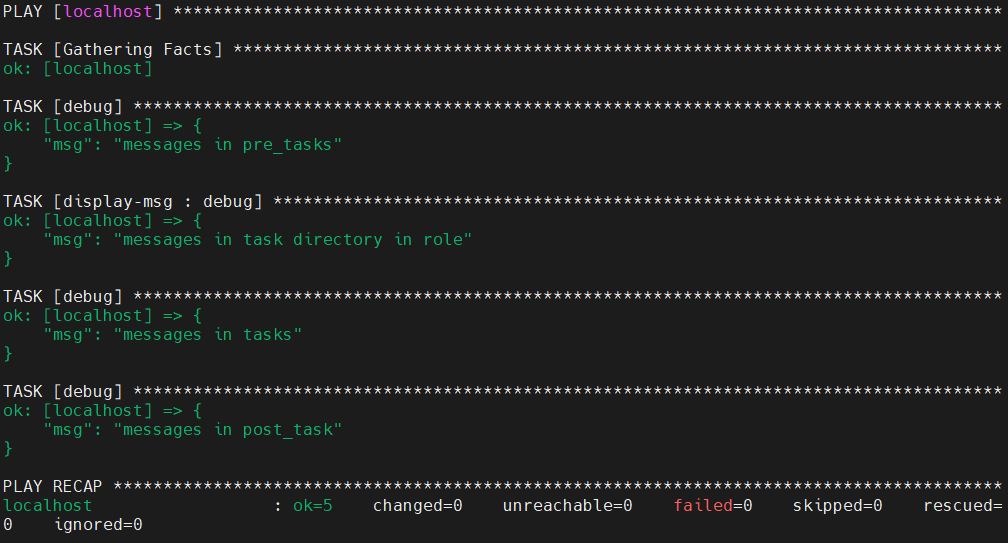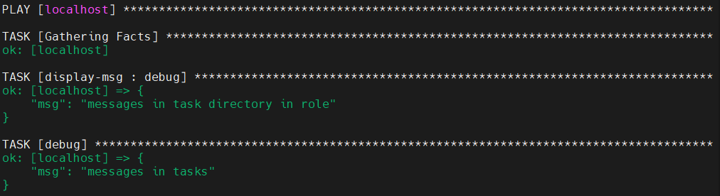 >> tasks: 에 debug 도 넣고 미리 만든 role 도 넣는다