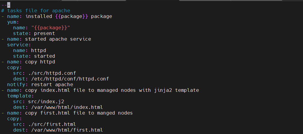 >> ex> tasks dir의 main.yml 에서 - tasks: 빼고 옮긴다