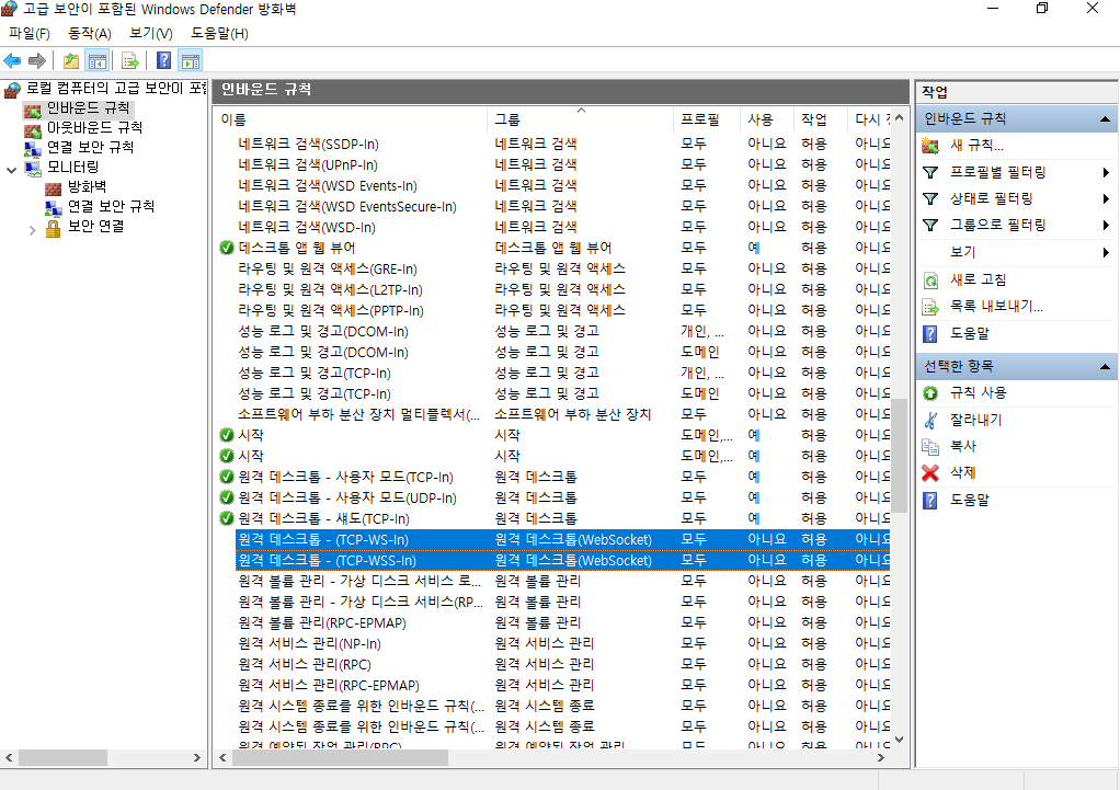 >> 방화벽에서도 원격 접속 허용