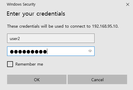 ▷ user2 접속하고, Winclient로 Remote 접속 [ IP 로 연결해서 user2로 원격접속 ]