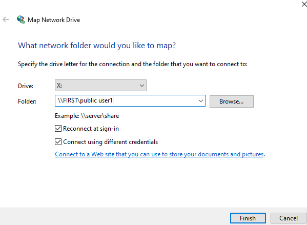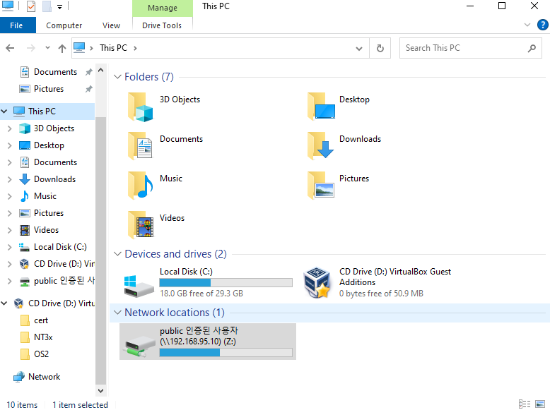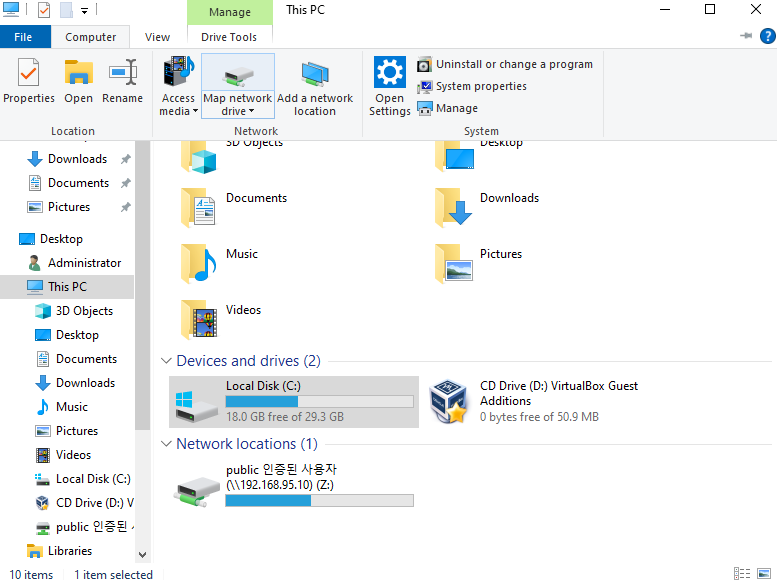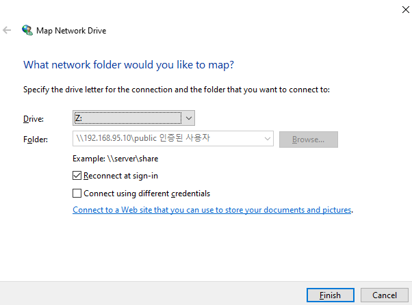 >> 내 PC 에서 Computer >> Map network drive 생성