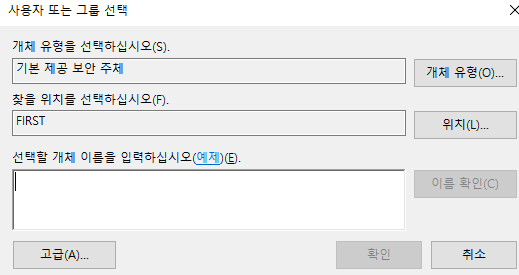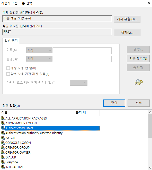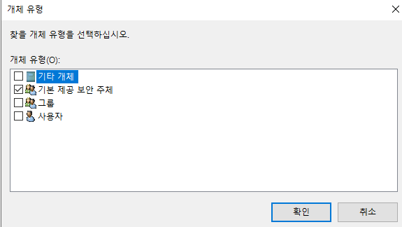 >> 고급에서 기본제공 보안주체 >> 지금찾기