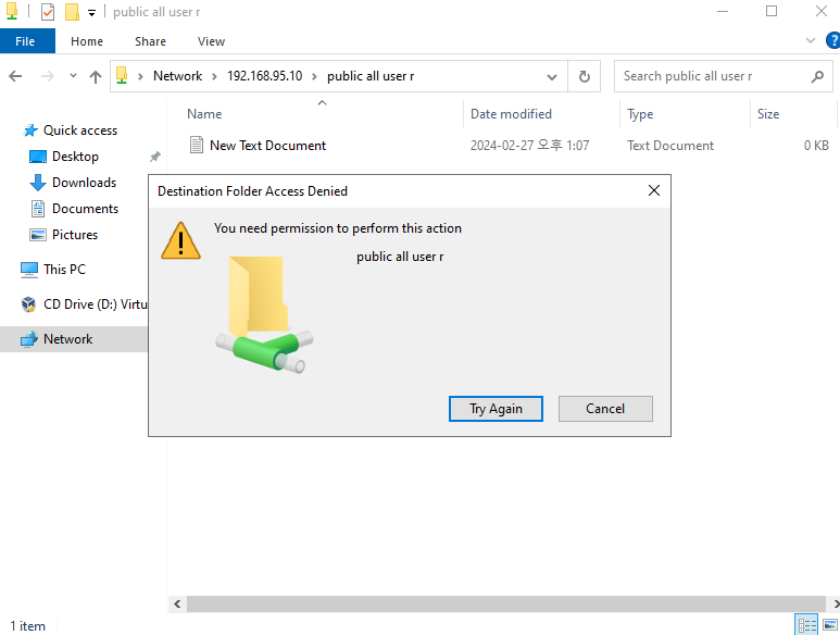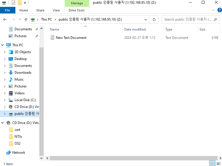 >> \\192.168.95.10\public user1 이 아니라 \\FIRST\public user1 은 되긴하는데 접근이 안된다