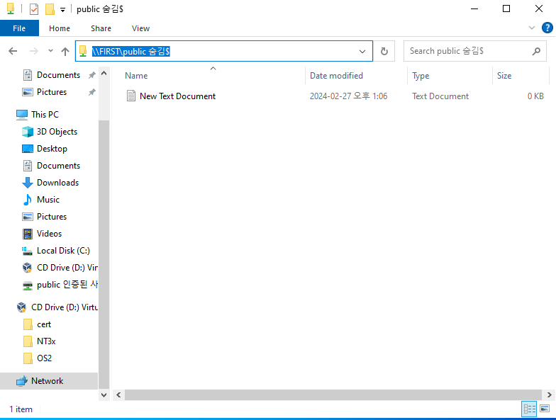 ▷ \\FIRST\\public 숨김$ 입력으로 숨긴 공유폴더를 들어갈 수 있다