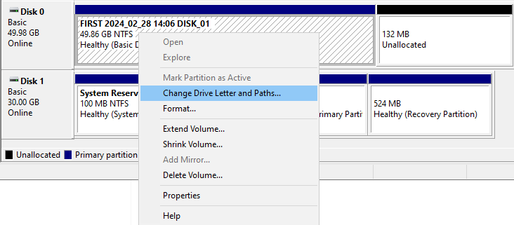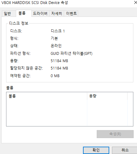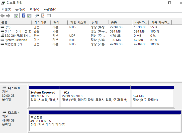 ▶ 50G SAS 디스크 추가하여 디스크 관리에서 백업 전용으로 드라이브 생성