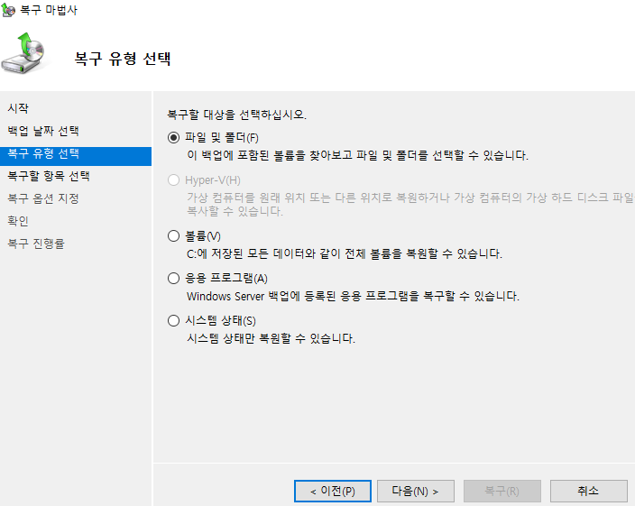 ▶ Windows Server 백업에서 복구 마법사 실행