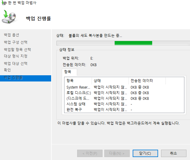 백업 진행