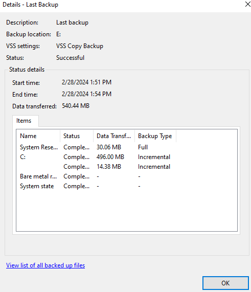 >>> View details 에서 증분 백업 확인 가능 ( Incremental )