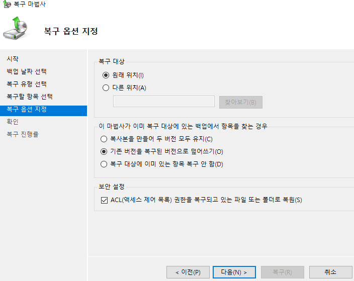 ▷ 백업을 여러 번 받았다면 여러 개의 백업 파일 중에서 선택 복구가 가능하다