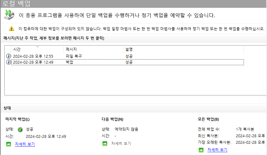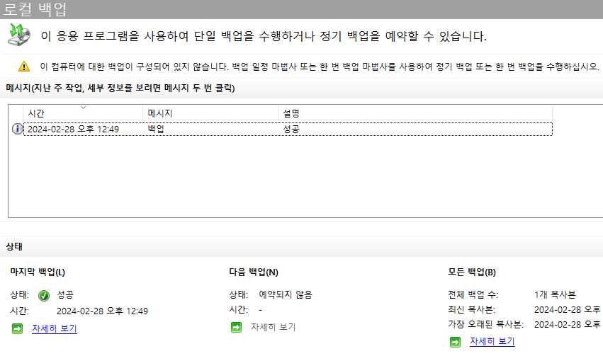 ▷ 로컬 백업 >> 한 번 백업