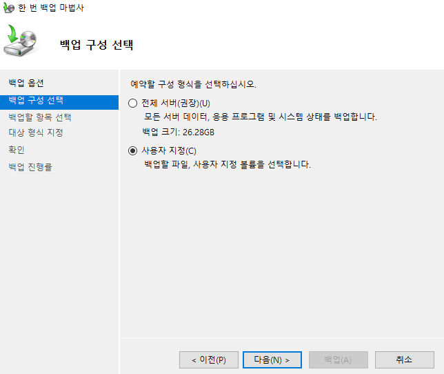 [ 제어판 ] >> [ 시스템 및 보안 ] >> [ 관리 도구 ] >> [ Windows Server 백업 ]