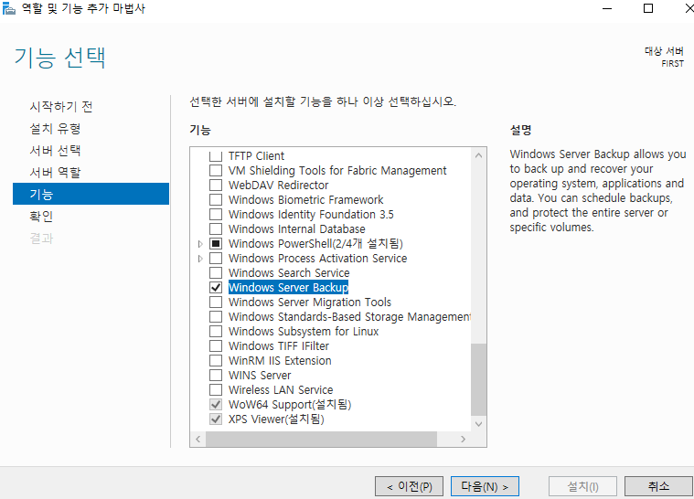 >> Windows Server Backup 을 선택한다