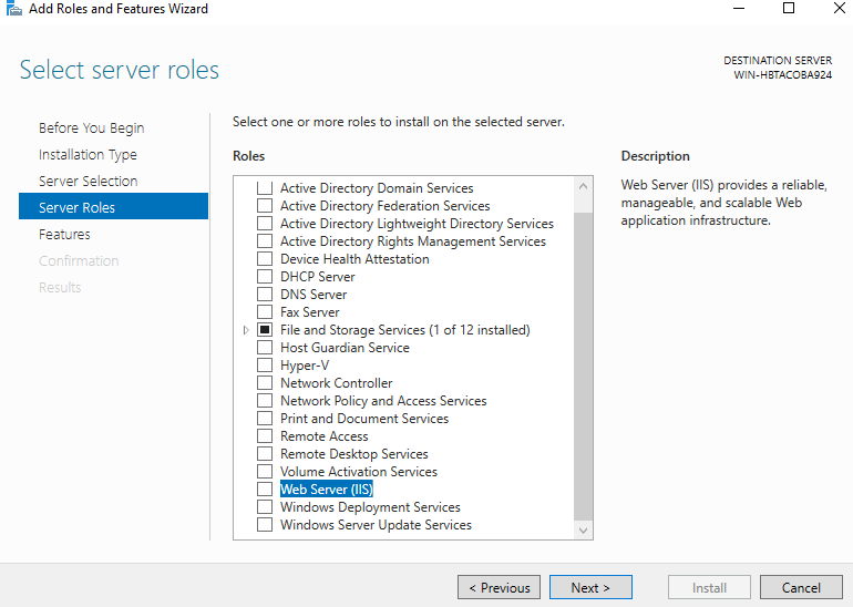 ▶ 역할 서비스 선택 >> 웹 서버 역할 ( IIS ) >> 역할 서비스