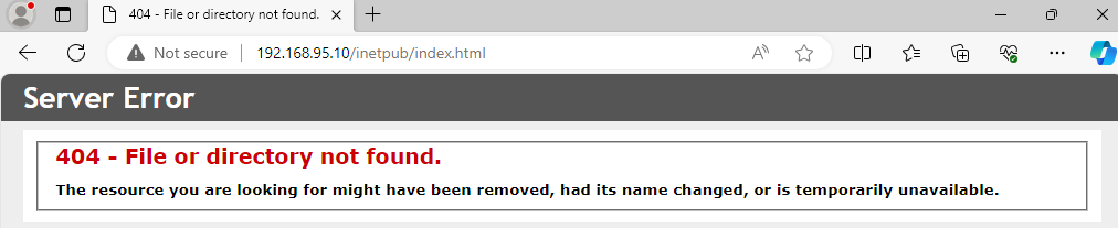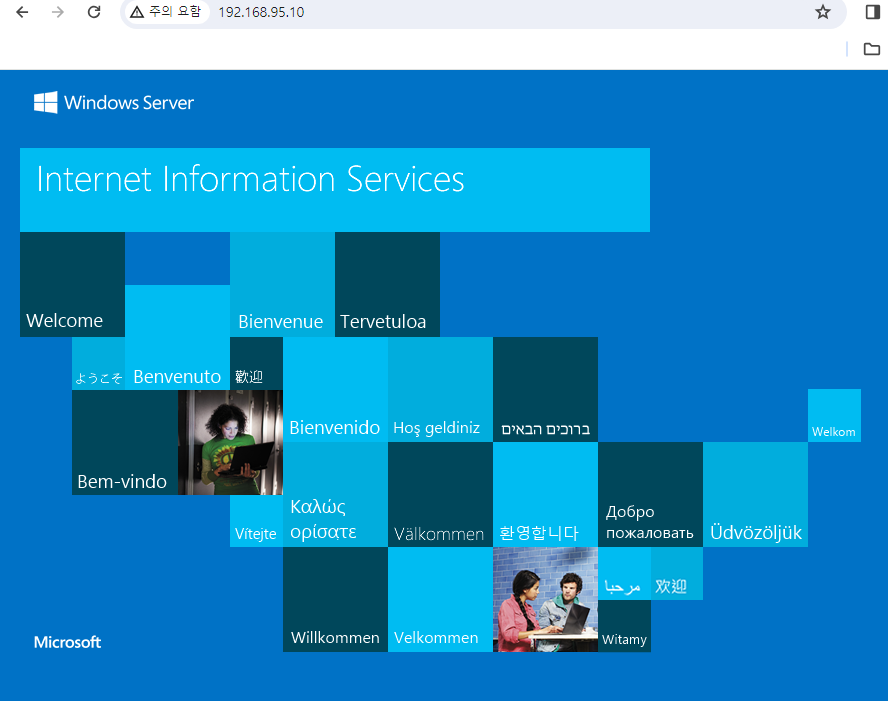 ▶ 웹 브라우저 http://192.168.95.10 접속하여 IIS 초기화면이 나오면 정상 작동