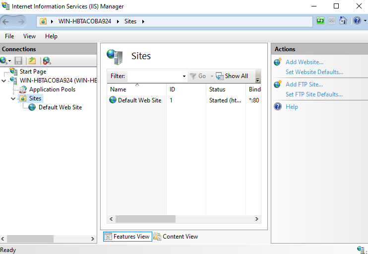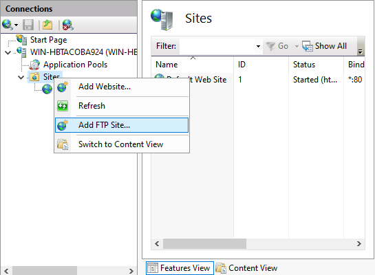 ▶ 기본적으로 웹 서비스 작동되나 FTP 서비스는 새로 생성해야된다
