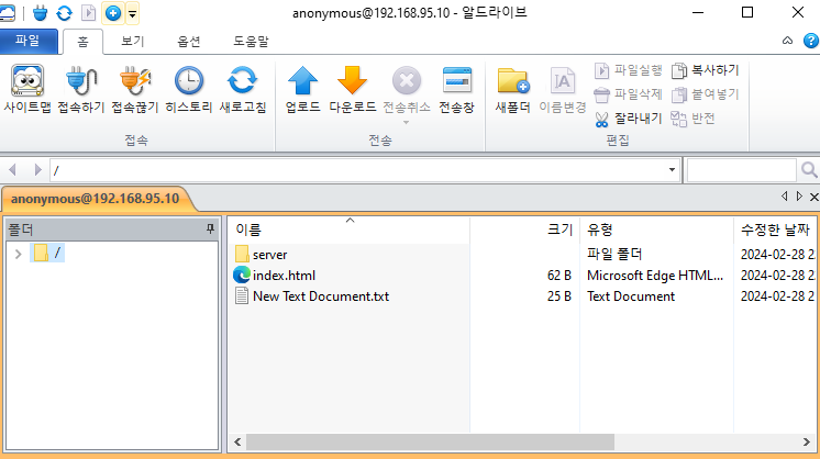 ▷ 읽기 권한만 설정해 두었으므로, 다운로드 가능 / 업로드 불가능