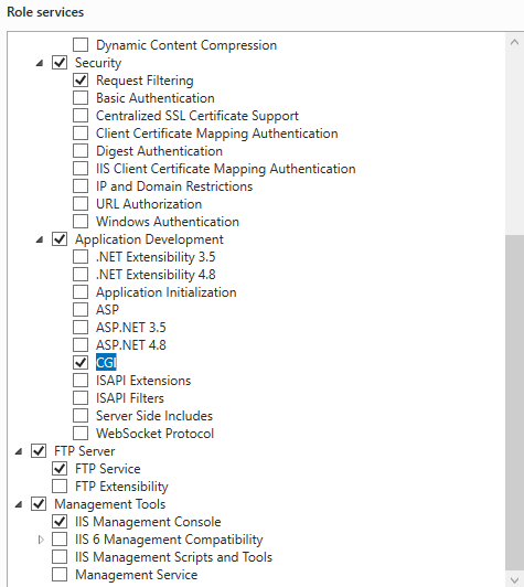 >> Application Development 확장 >> CGI / FTP Server 체크