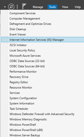 ▶ 서버관리자 >> 도구 >> IIS ( 인터넷 정보 서비스 )