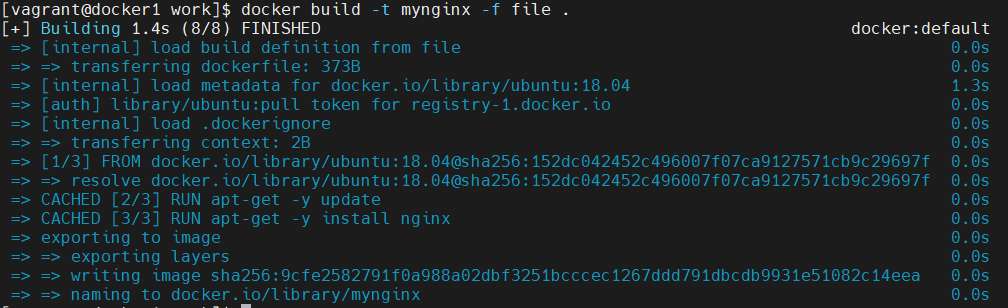 [vagrant@docker1 work]$ docker build -t mynginx -f file .