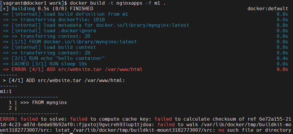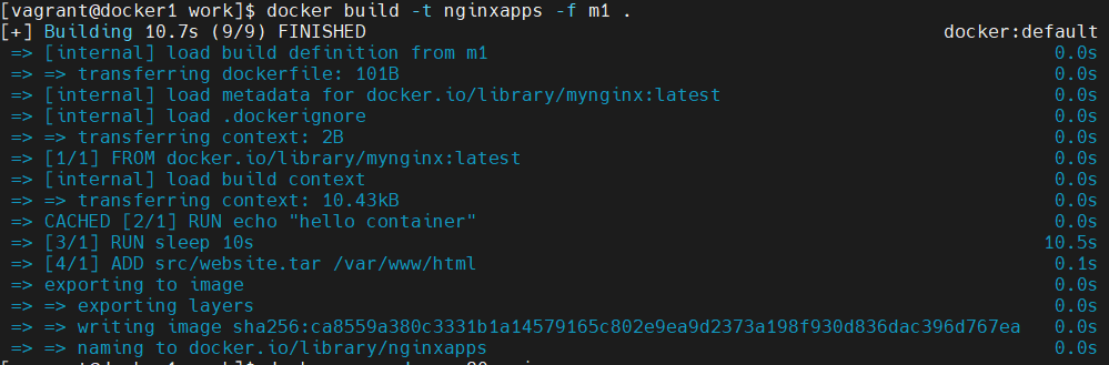[vagrant@docker1 work]$ docker build -t nginxapps -f m1 .