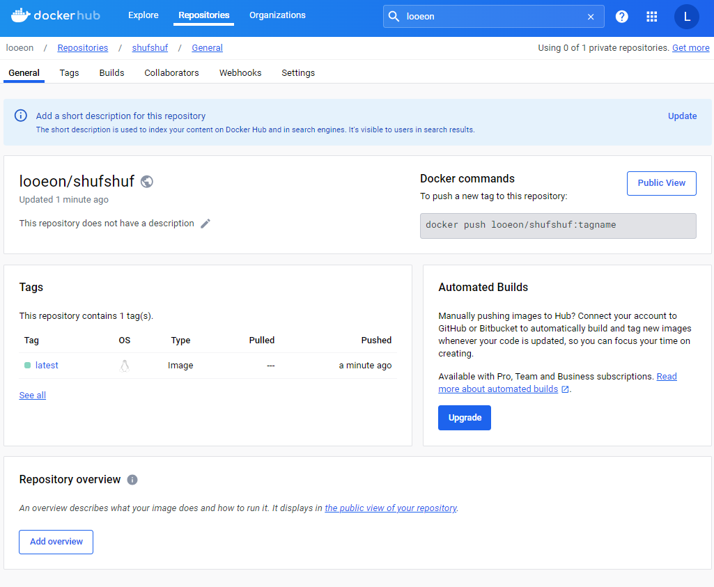 [vagrant@docker1 work]$ docker push looeon/shufshuf