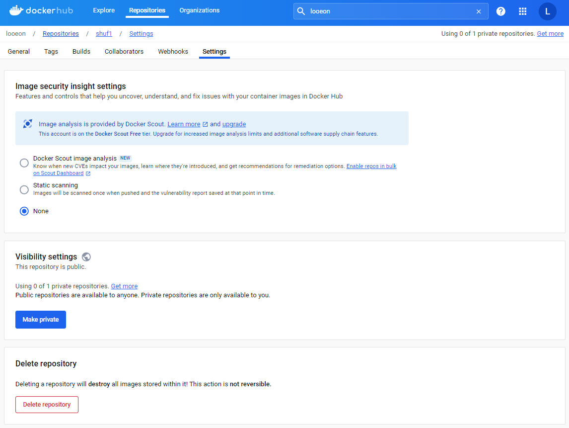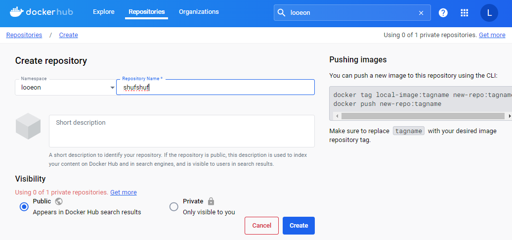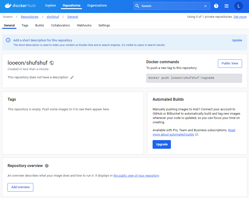 >> repository name 으로는 내가 push 로 넣어줄 이름