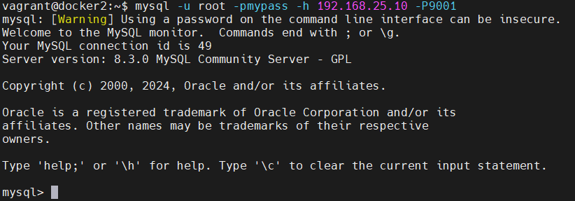 mysql -u root -pmypass -h 192.168.25.10 -P9001