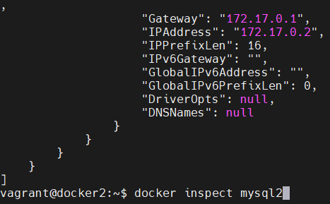 vagrant@docker2:~$ docker run -d --name mysql2 -e MYSQL_ROOT_PASSWORD=mypass mysql