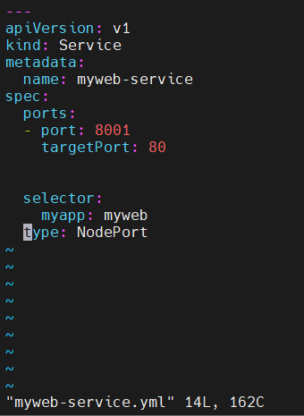 myweb-service ClusterIP 10.101.11.242 <none> 8001/TCP 5s