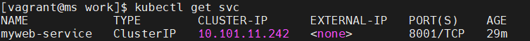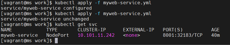 [vagrant@ms work]$ kubectl apply -f myweb-service.yml