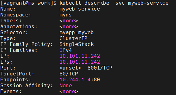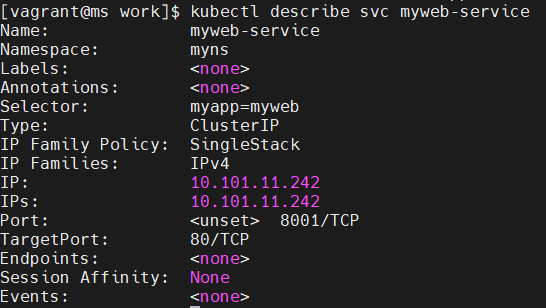 [vagrant@ms work]$ kubectl describe svc myweb-service