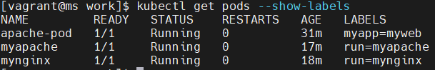 [vagrant@ms work]$ kubectl get pods --show-labels