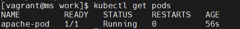 [vagrant@ms work]$ kubectl apply -f apache.yml