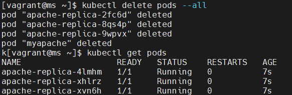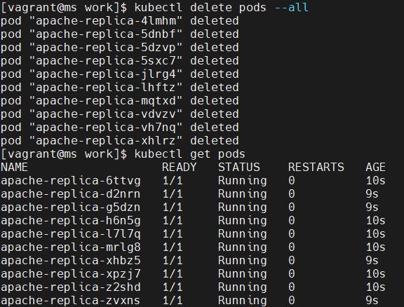 [vagrant@ms work]$ kubectl delete replicasets.apps apache-replica