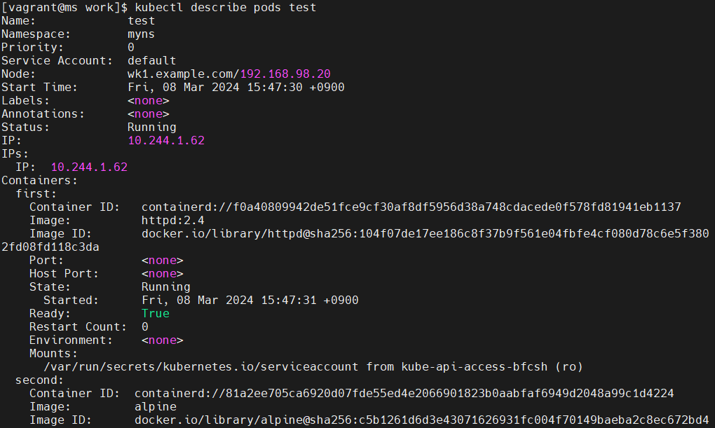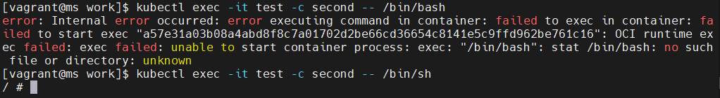 [vagrant@ms work]$ kubectl exec -it test -- /bin/bash