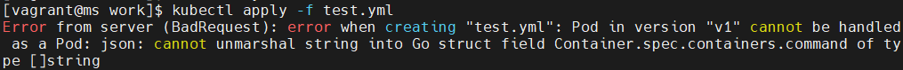 ▩ kubernetes 에서 command 는 대괄호를 붙인 exec 형식으로만 해야한다