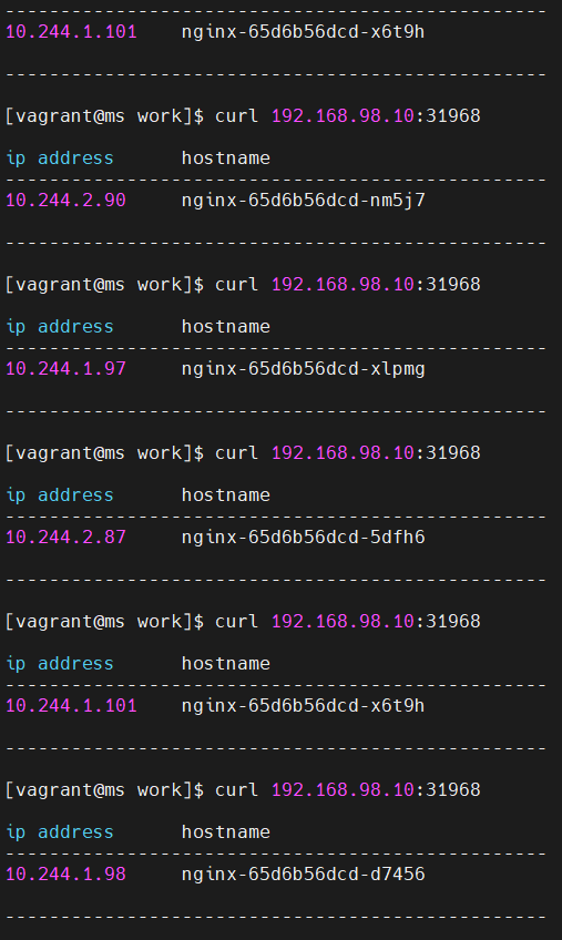 ● 라운드로빈 형식으로 Node IP로 접속할 때마다 부하 분산 시켜준다