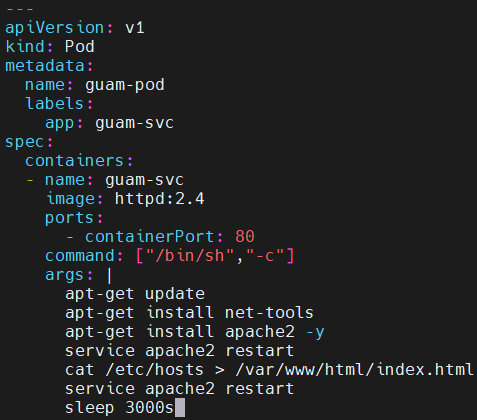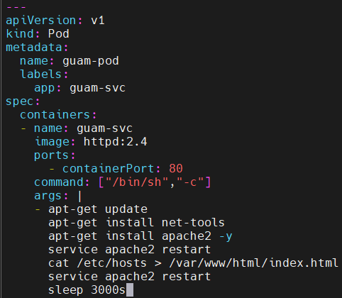 kubectl exec -it guam-pod -- /bin/bash -c "service apache2 status"