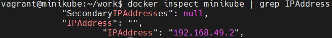 ● minikube 컨테이너의 IP 로 접속해야한다 [ Host IP 로 보는 것이 아니다 ]