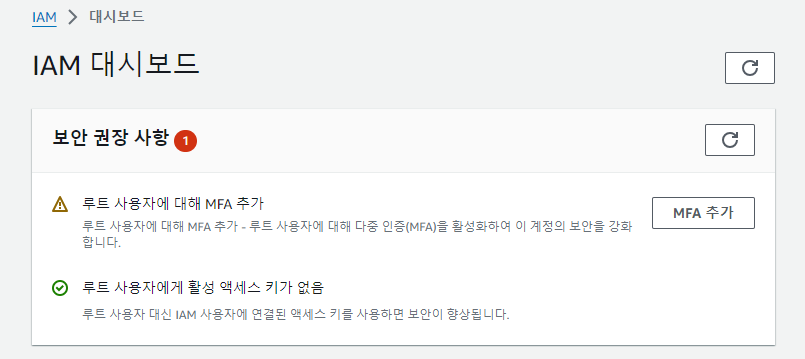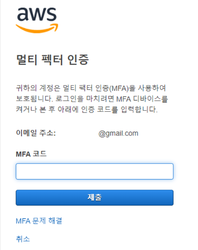 >> 비밀번호 입력 후 MFA 코드 인증이 나오면 제대로 완료되었다