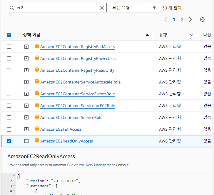 ○ 그룹 정책 설정 >> ec2 에 대한 모든 권한