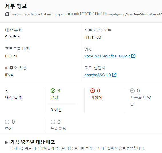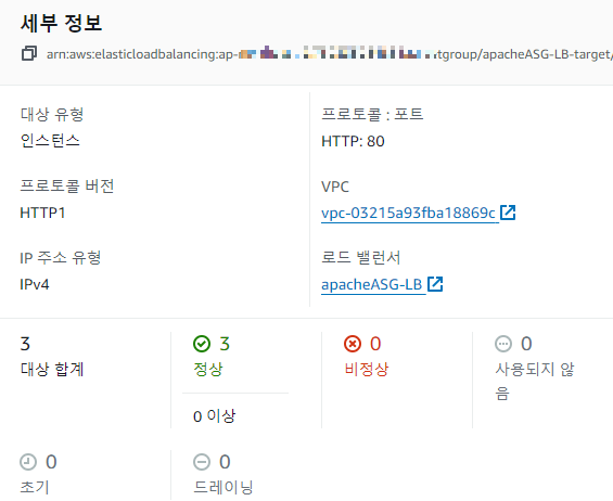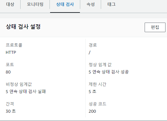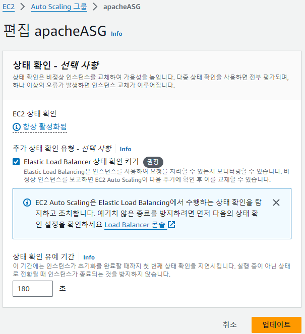 ○ LB 와 ASG 간의 상호 확인이 되게 만드는 설정창
