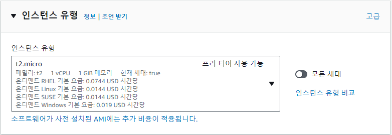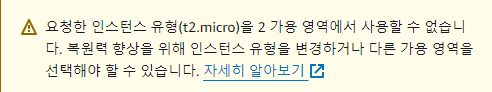 ▩ 하지만 t2.micro 는 2a 와 2c 만 가용영역으로 가능하므로 2b / 2d 는 뺀다