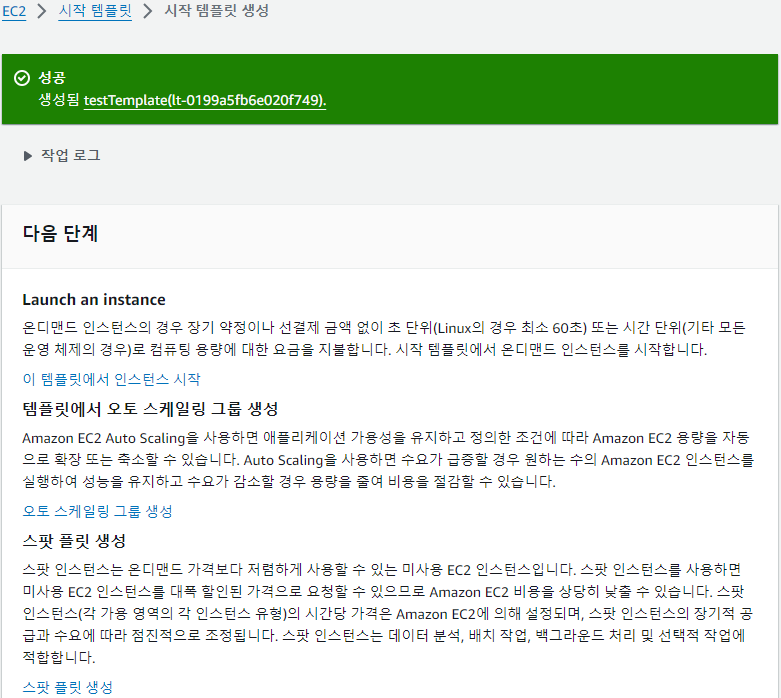 ○ 시작 템플릿이 만들어지면 이 템플릿 위에 인스턴스 시작할 수 있다