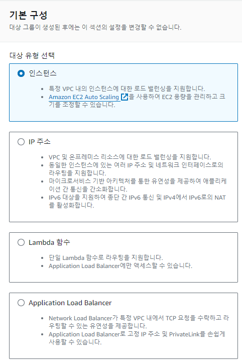 ◆ 로드밸런스 대상 그룹에는 다양한 대상 유형을 선택할 수 있다