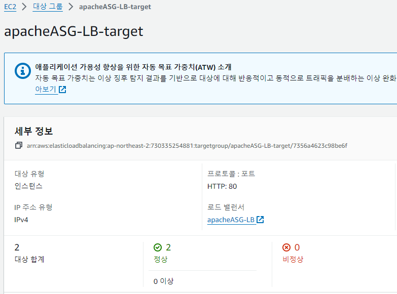 # 현재는 LB 에서 문제를 발견해도 ASG 는 정상으로 파악하도록 설정