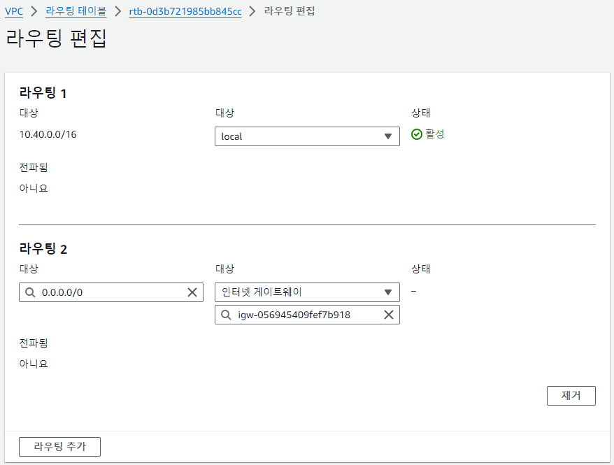 # 라우팅 편집으로 인터넷 게이트웨이 연결 잊지 말자