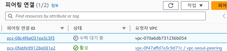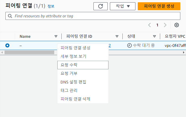 ○ 근데 버지니아에서 피어링 연결 들어가니까 이거 있는데 요청 수락 클릭