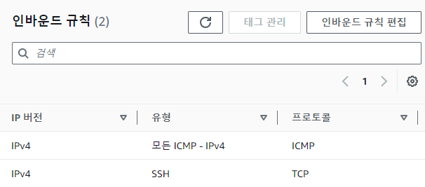 ○ 서울과 버지니아 양쪽의 인바운드 규칙 ICMP 허용