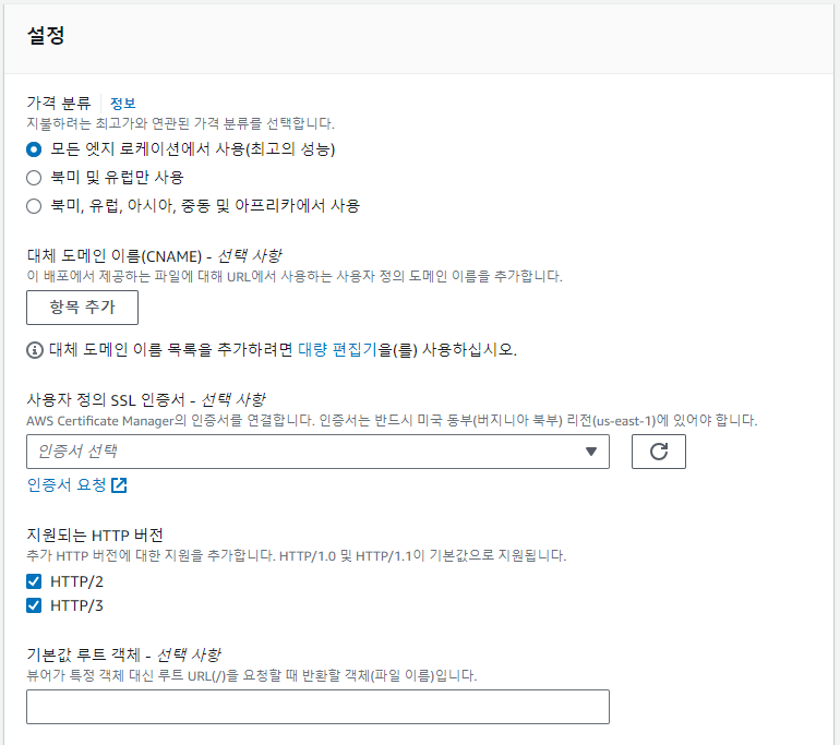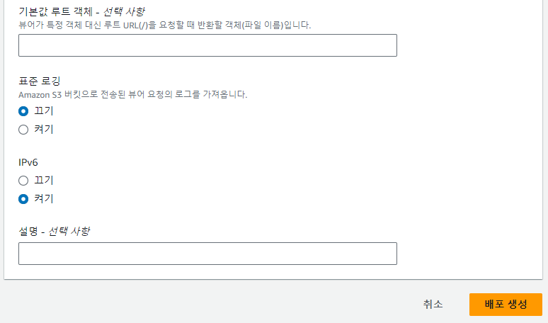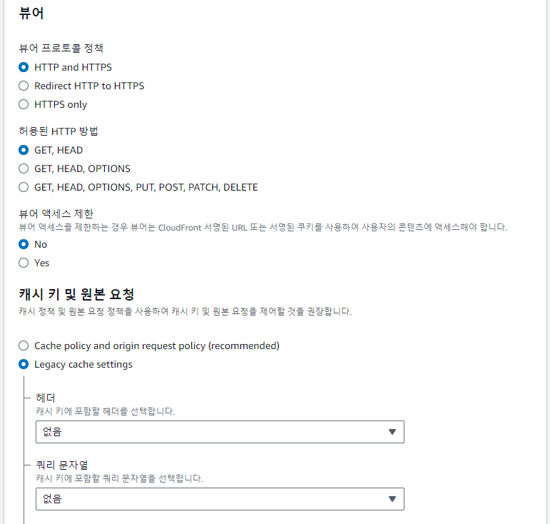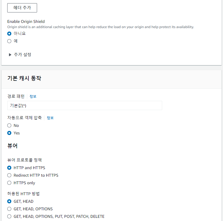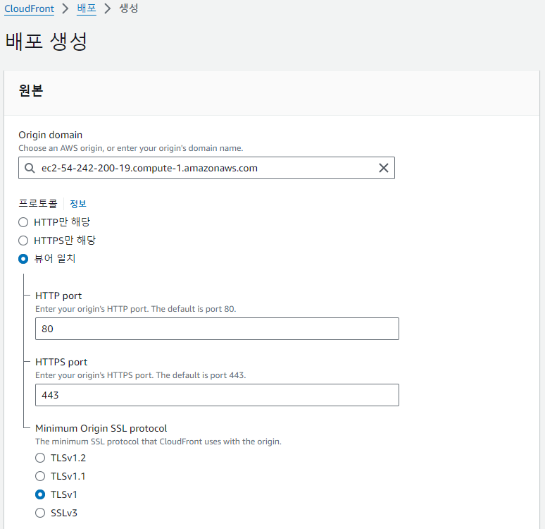 ○ Origin domain 에는 퍼블릭 DNS 이름 넣기